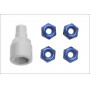 Dadi autobloccanti con chiave che serve per montare le ruote al modello. I dadi autobloccanti hanno oltre al filetto un'anello di plastica nel quale si avvita il grano.